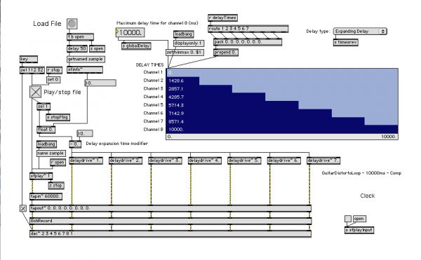 The sound world of Vortex was created from a one-take recording of electric guitar loops built up using a Boss DD-6 delay pedal. This was sent through a Max/MSP process in which eight streams of the guitar material had equitemporal delays applied, which linearly ramped down to zero over the course of the piece.